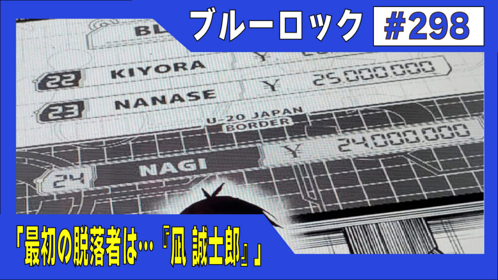『御影 玲王』は【前297話】でゴールを決めたことにより、脱落の可能性は「ほぼ無い」と言っても過言ではない。