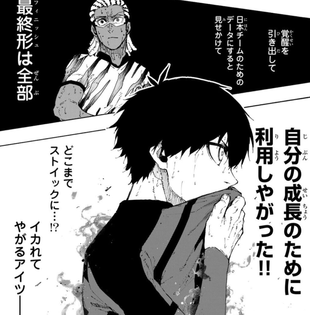 → 「自分の成長のためならなんでもやる」といった精神の『潔 世一』は、「最悪のサッカー道具(マシン)」に見えていたようだ。