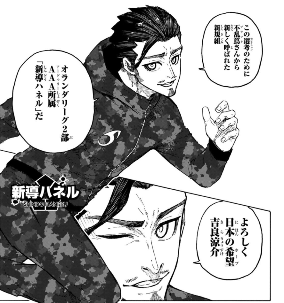 物語の序盤 “一次選考” にて、『二子 一揮』と共に〈チームY〉として、『潔 世一』たちの〈チームZ〉を苦しめたキャラだ。