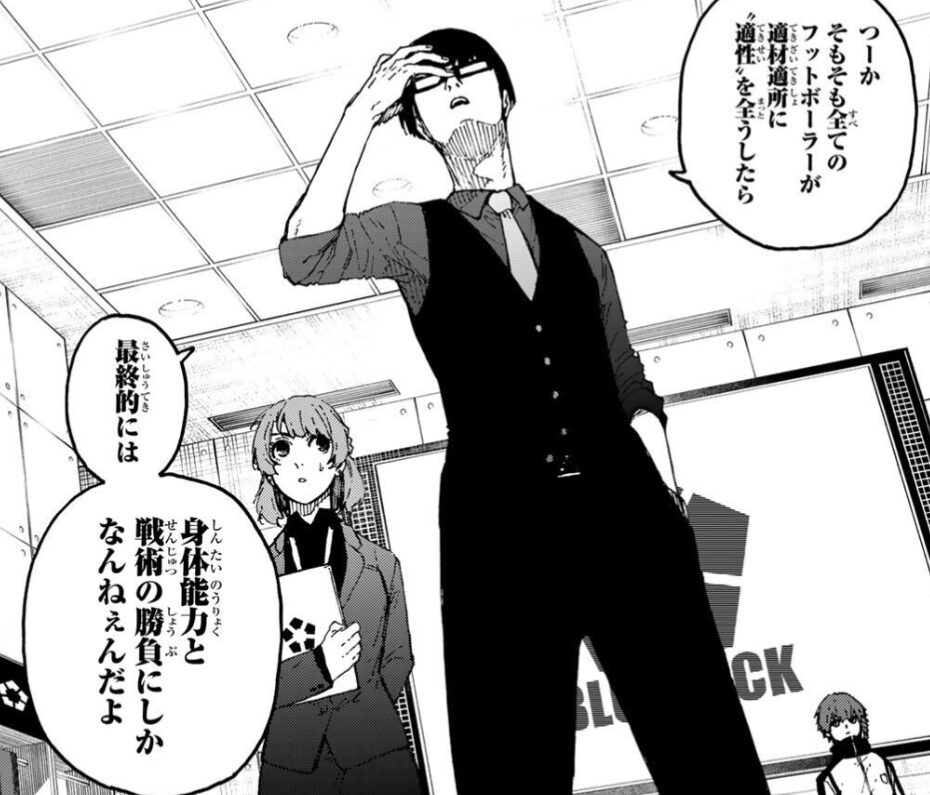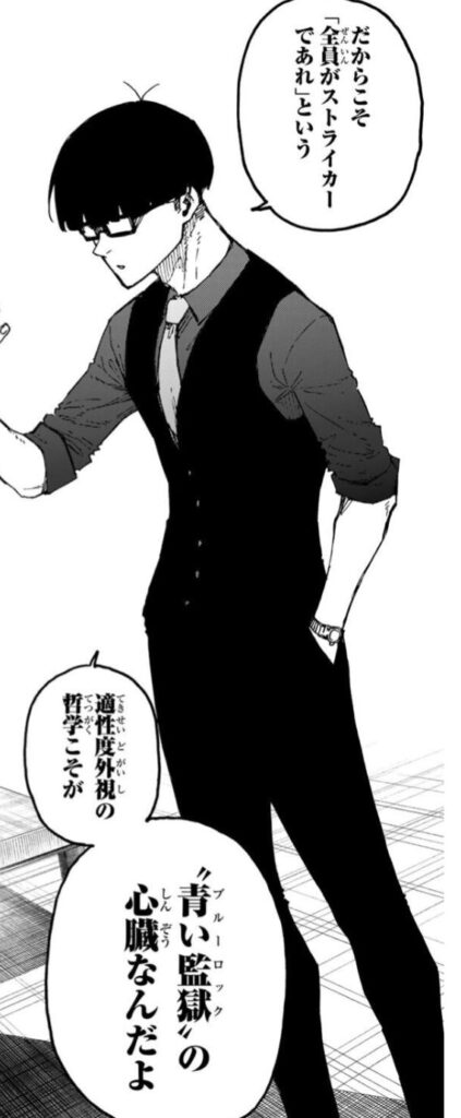 それは、今まで “青い監獄(ブルーロック)” で教えてきた「全員が世界一のストライカーを目指す」という、いわば、適性を完全に無視した “適性度外視論” と真逆の理論だろう。