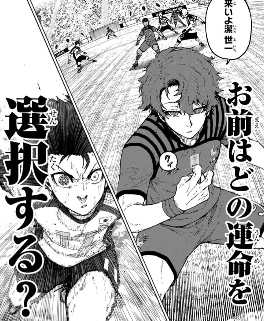 → 『ユーゴー』の “適性運命論” を絶対に認めなかった『潔 世一』だったが、ついに「自分をNo.2」と認め、『烏 旅人』との共闘を決意!