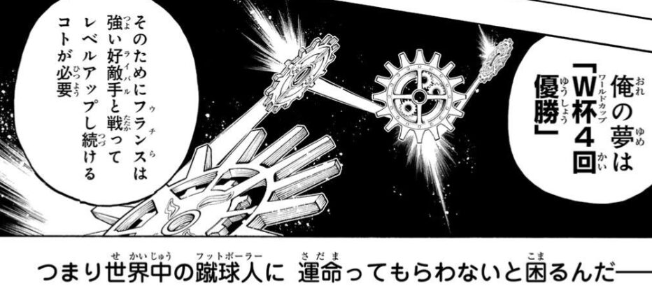 「自分の “W杯を4回優勝” という夢を叶えるために、相手チームにアドバイスをして『好敵手(ライバル)』に底上げし、その良い相手と戦うコトにより〈フランス〉をレベルアップさせる」