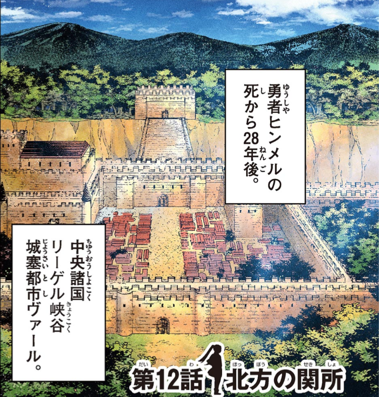 フリーレン、フェルン、シュタルクの3人は、〈中央諸国 / リーゲル峡谷 / 城塞都市ヴァール〉へ到着した。
