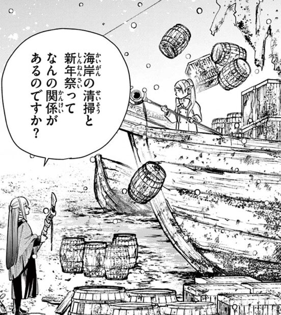 村の老人は「海岸の清掃を引き受けてもらえないか」とフリーレンに相談。