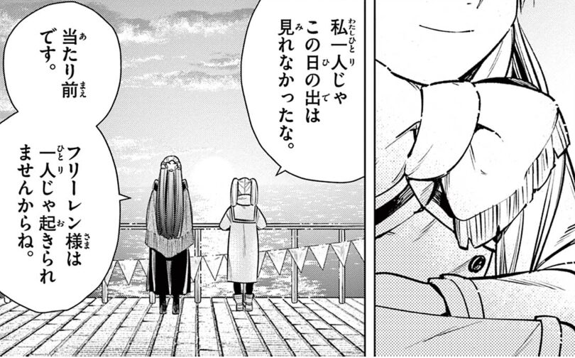 フリーレンも「私一人じゃこの日の出は見れなかったな。」と言っていたように、仲間(フェルン)がいたから実現できたことです!
