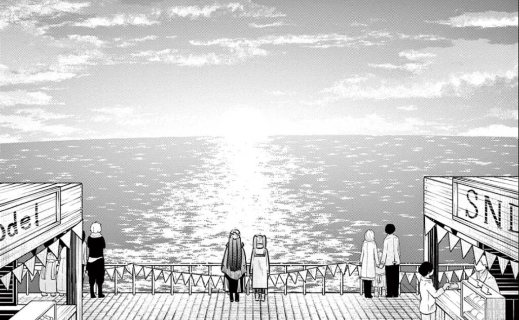 フェルンは、寝ぼけているフリーレンを起こして着替えさせ、フリーレンの手をひいて海岸に向かった。