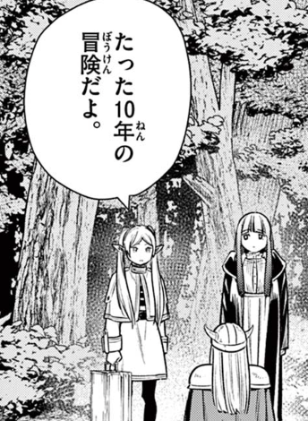 「10年かかった」というアイゼンの言葉に対して、「たった10年の冒険だよ。」と、フリーレンは答えた。