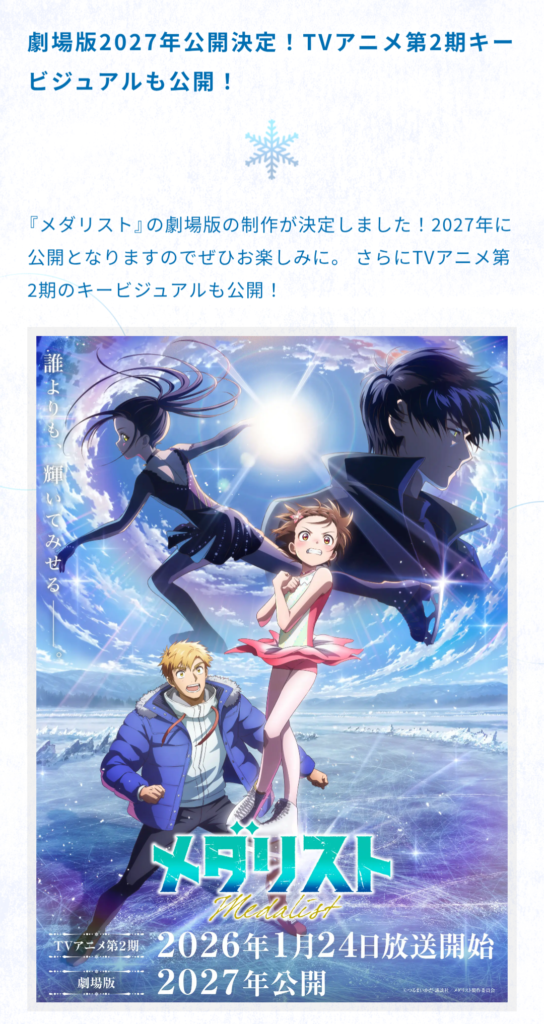 2026年1月17日:【劇場版 メダリスト制作決定‼】の発表がありました!