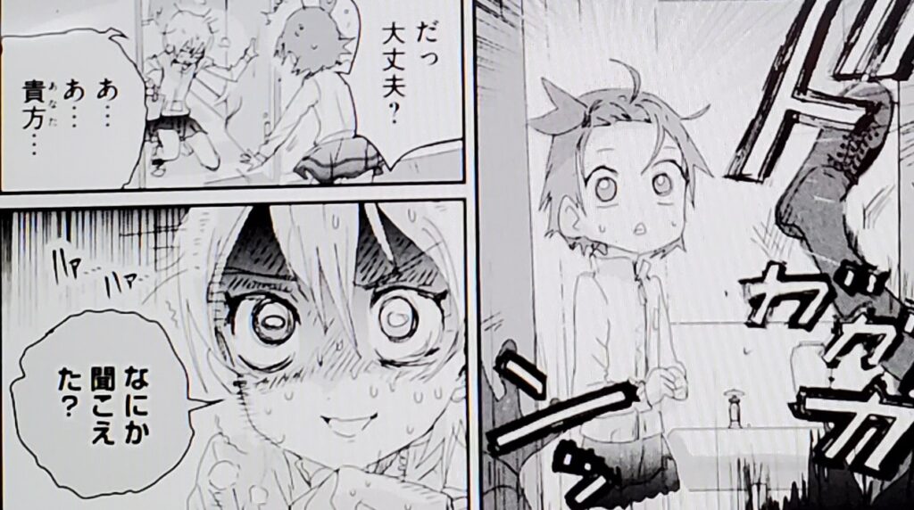 「精神統一 (1人人形遊び)」が終わった『八木 夕凪』は、トイレから出ると目の前には『いのり』が!